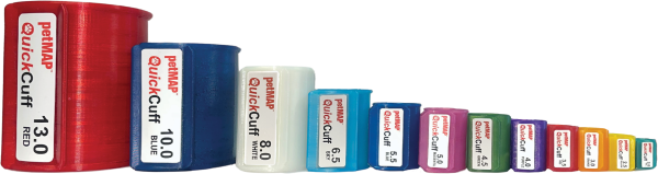 PetMAP™ blood pressure device includes seven cuffs of various sizes from 2 to 5.5 cm.